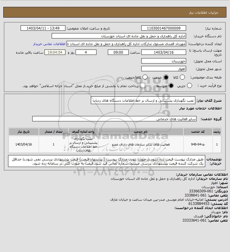 نام دستگاه خریدار:اداره کل راهداری و حمل و نقل جاده ای استان خوزستان