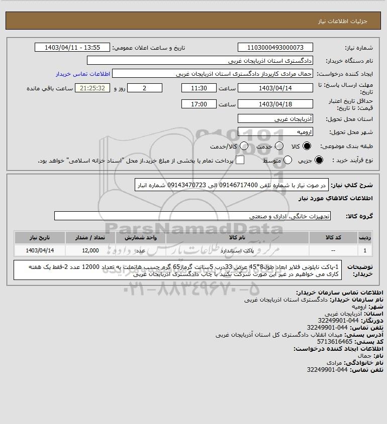 نام دستگاه خریدار:دادگستری استان اذربایجان غربی