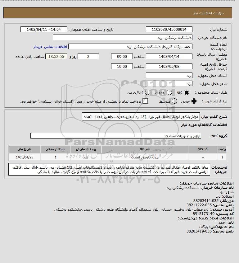 نام دستگاه خریدار:دانشکده پزشکی یزد