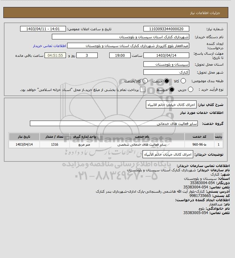 نام سازمان خریدار: شهرداری کنارک استان سیستان و بلوچستان