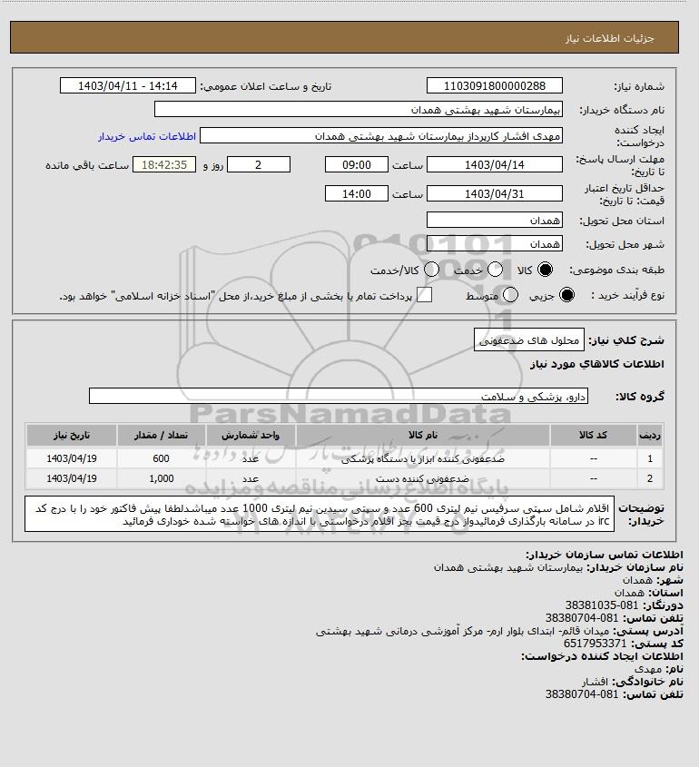 | 2 | -- | ضدعفونی کننده دست | عدد | 1,000 | 1403/04/19 |