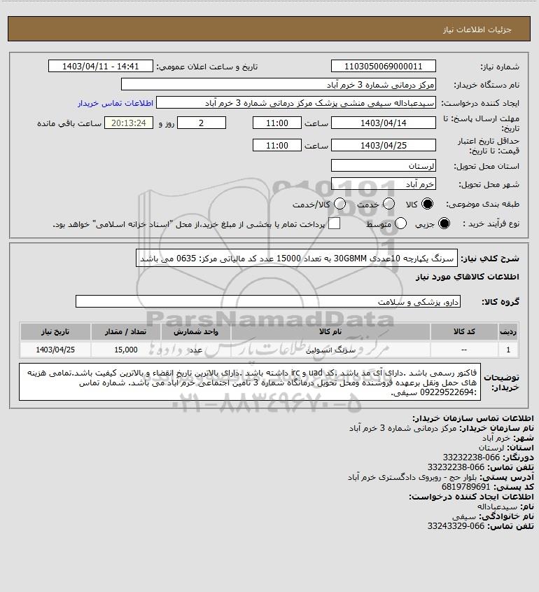 نام دستگاه خریدار:مرکز درمانی شماره 3 خرم آباد