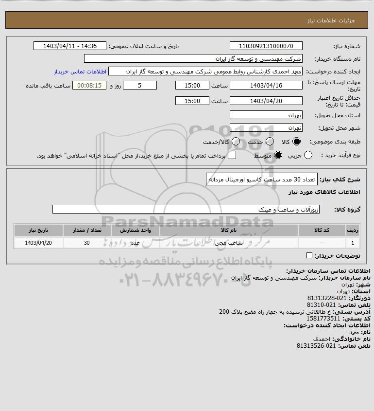 استعلام تعداد 30 عدد ساعت کاسیو اورجینال مردانه, استعلام تعداد 30 عدد ساعت کاسیو اورجینال مردانه
