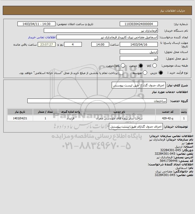 توضیحات خریدار:اجرای جدول گذاری طبق لیست پیوستی