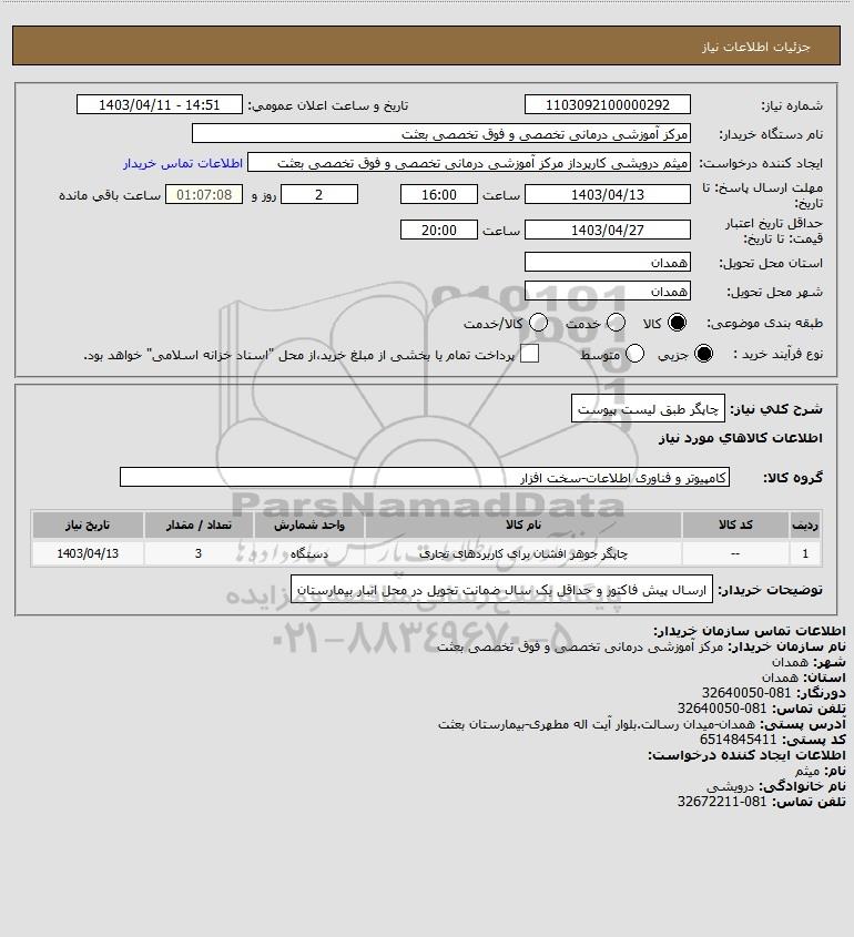 شرح کلی نیاز: چاپگر طبق لیست پیوست