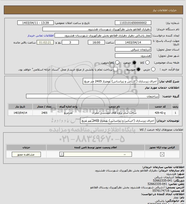 توضیحات خریدار:اجرای زیرسازی ( اساس و زیراساس) بهمتراژ 2405 متر مربع