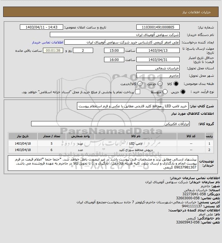 نام دستگاه خریدار:شرکت سهامی آلومینای ایران