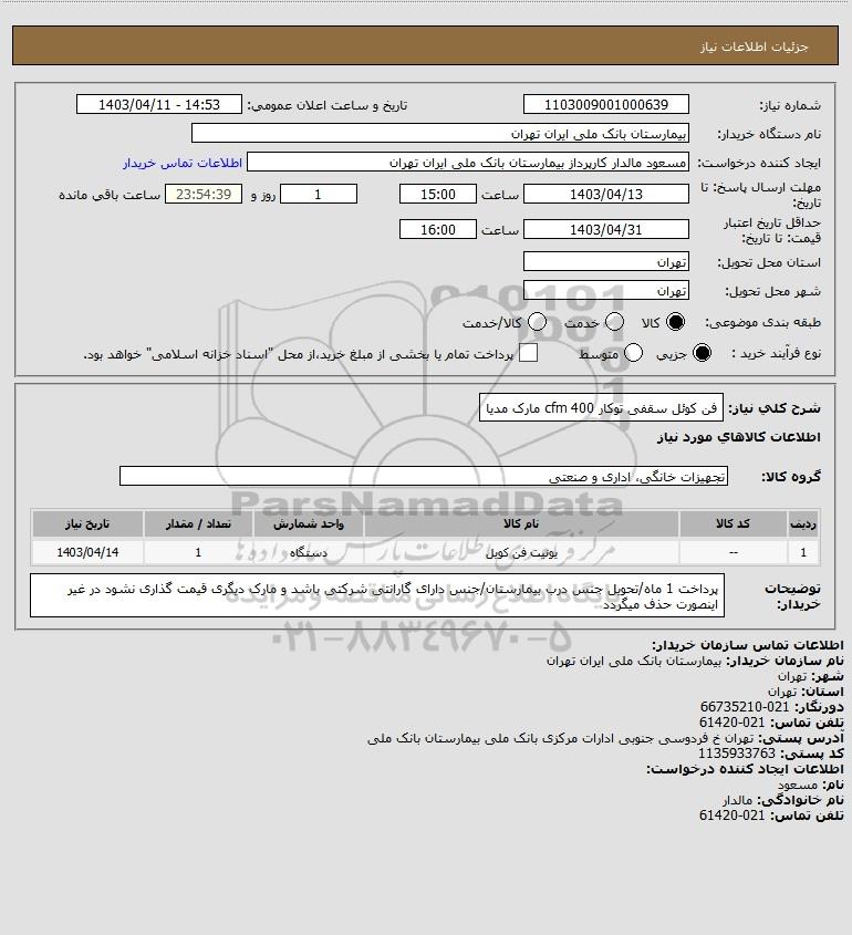 نام دستگاه خریدار:بیمارستان بانک ملی ایران تهران