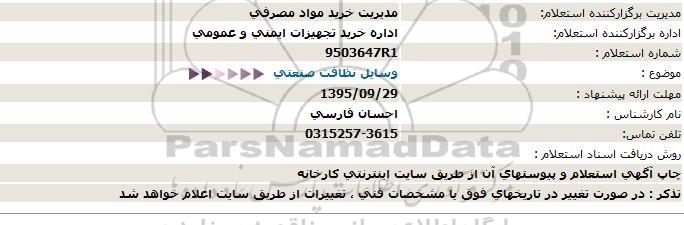 اداره برگزار کننده استعلام : اداره خرید تجهیزات ایمنی و عمومی