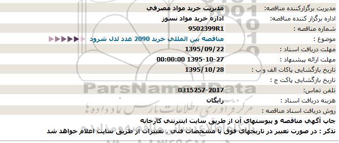 موضوع : مناقصه بین المللی خرید 2090 عدد لدل شرود