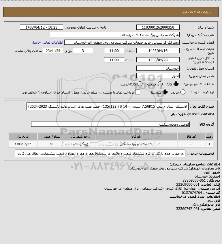 نام دستگاه خریدار:شرکت سهامی برق منطقه ای خوزستان