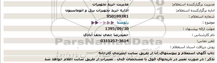 اداره برگزارکننده استعلام: اداره خرید تجهیزات برق و اتوماسیون