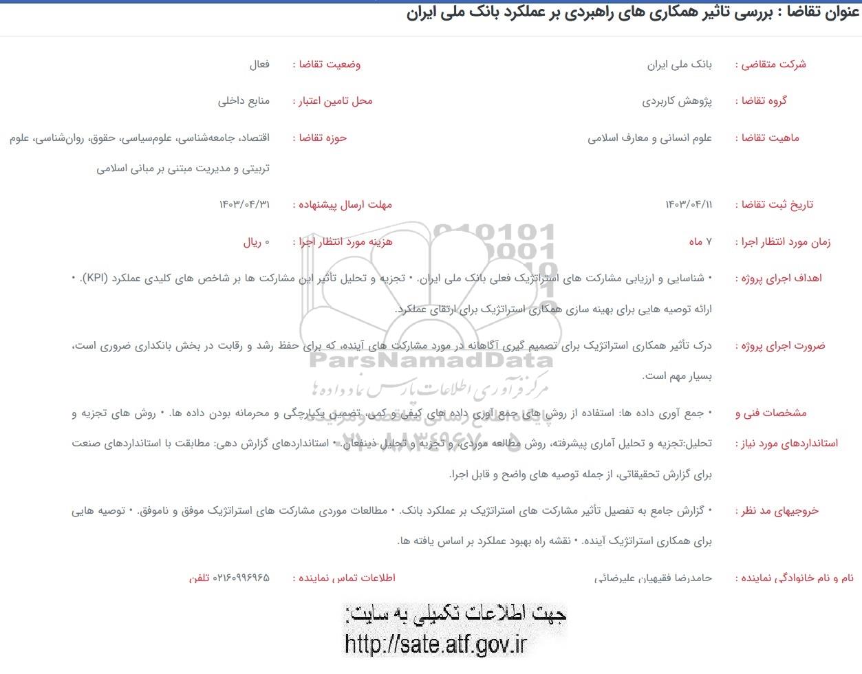 عنوان تقاضا : بررسی تاثیر همکاری های راهبردی بر عملکرد بانک ملی ایران