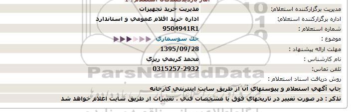 اداره برگزارکننده استعلام:     اداره خرید اقلام عمومی و استاندارد