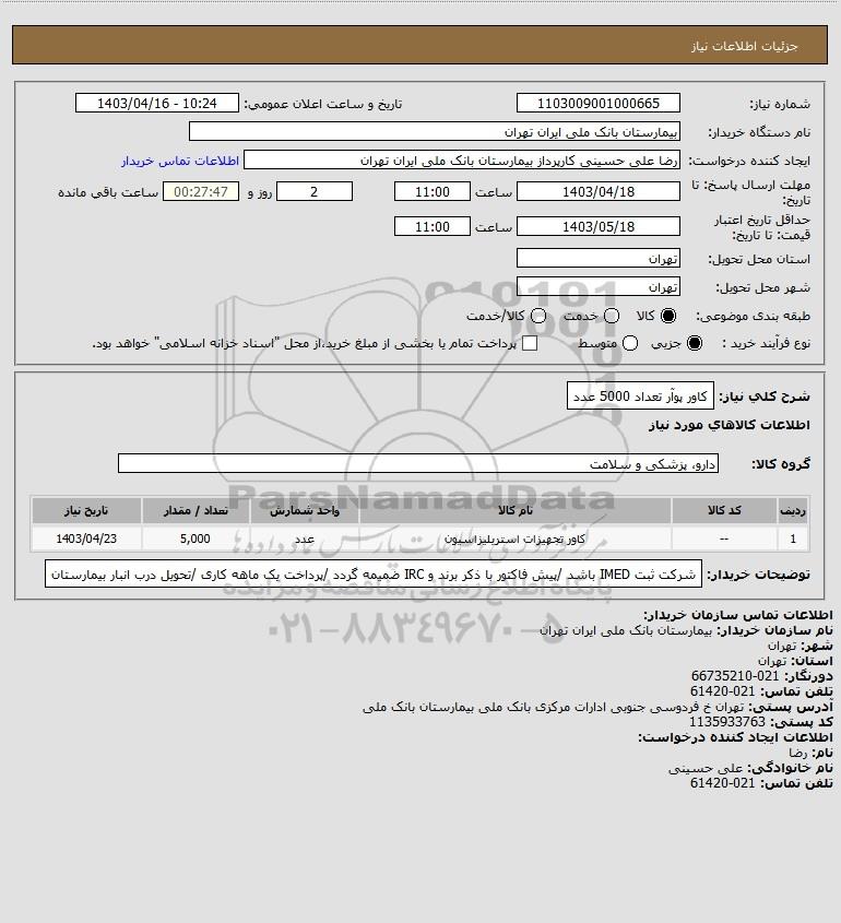 شرح کلی نیاز: کاور پوآر تعداد 5000 عدد