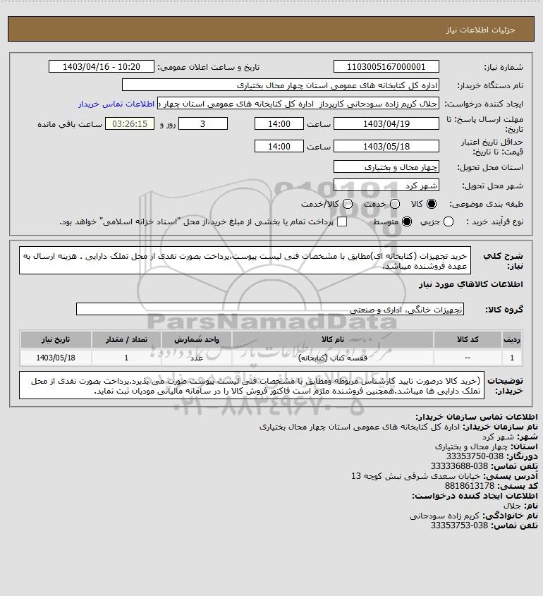 نام دستگاه خریدار:اداره کل کتابخانه های عمومی استان چهار محال بختیاری