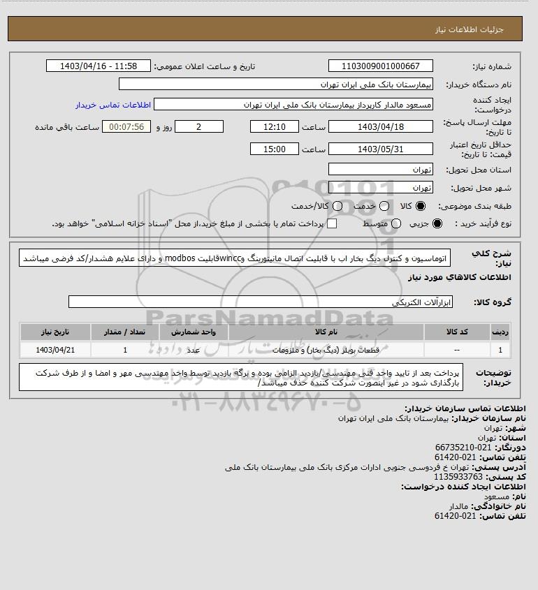 نام دستگاه خریدار:بیمارستان بانک ملی ایران تهران