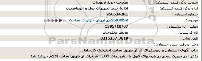 استعلام آنالایزر ارزش حرارتی , استعلام, استعلام آنالایزر ارزش حرارتی