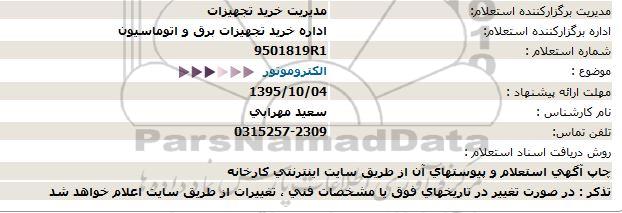اداره برگزارکننده استعلام: اداره خرید تجهیزات برق و اتوماسیون