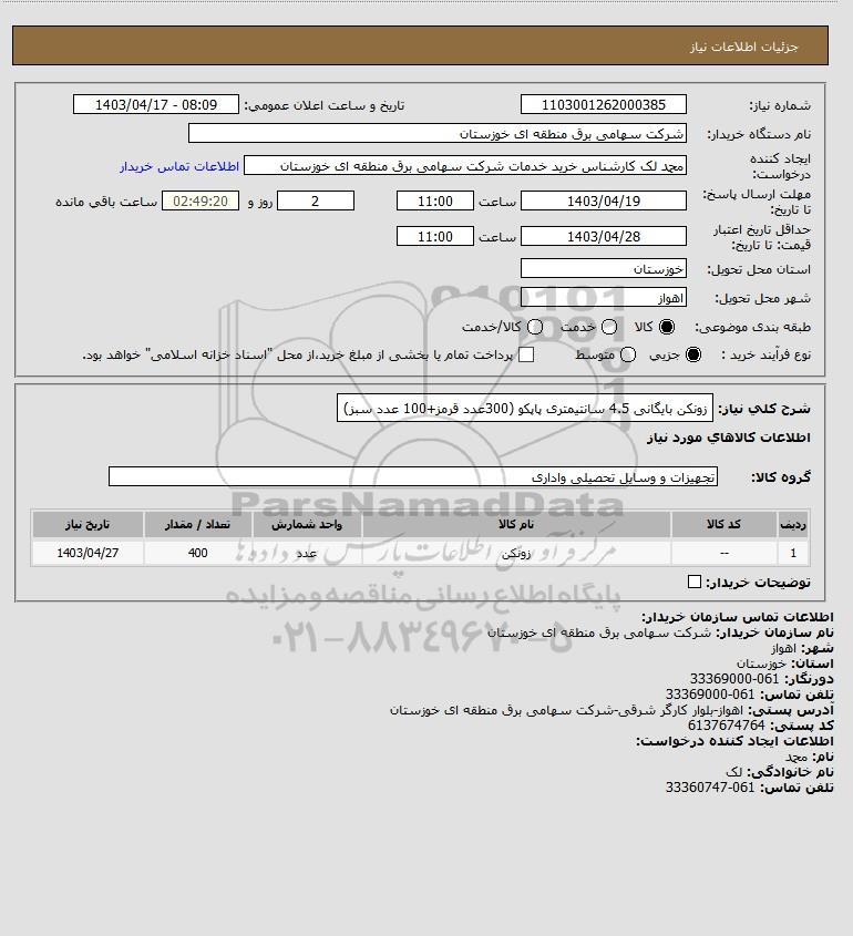 نام دستگاه خریدار:شرکت سهامی برق منطقه ای خوزستان