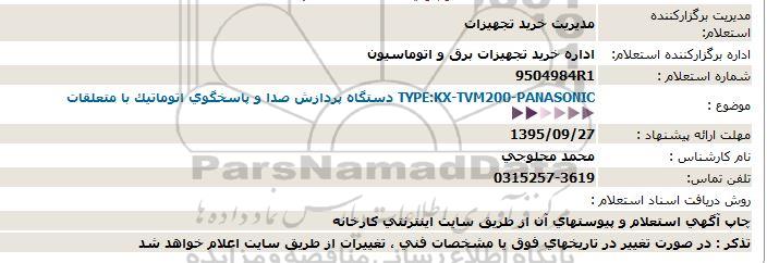 استعلام دستگاه پردازش صدا و پاسخگوی اتوماتیک با متعلقات 95.9.24, استعلام, استعلام دستگاه پردازش صدا و پاسخگوی اتوماتیک با متعلقات 95.9.24