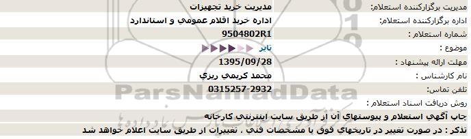 اداره برگزارکننده استعلام: اداره خرید اقلام عمومی و استاندارد