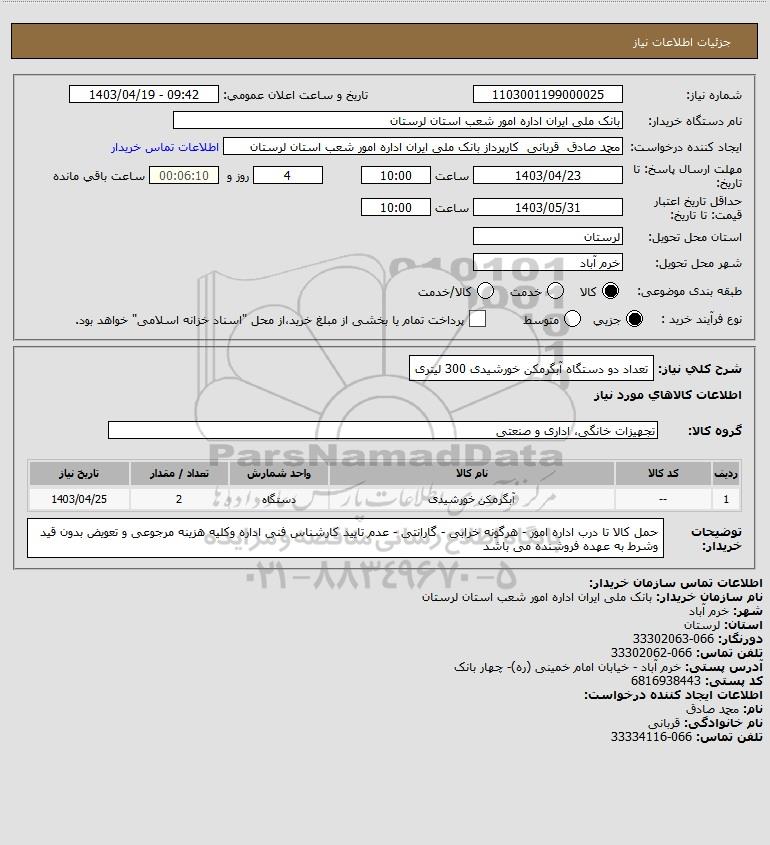 نام سازمان خریدار: بانک ملی ایران اداره امور شعب استان لرستان
