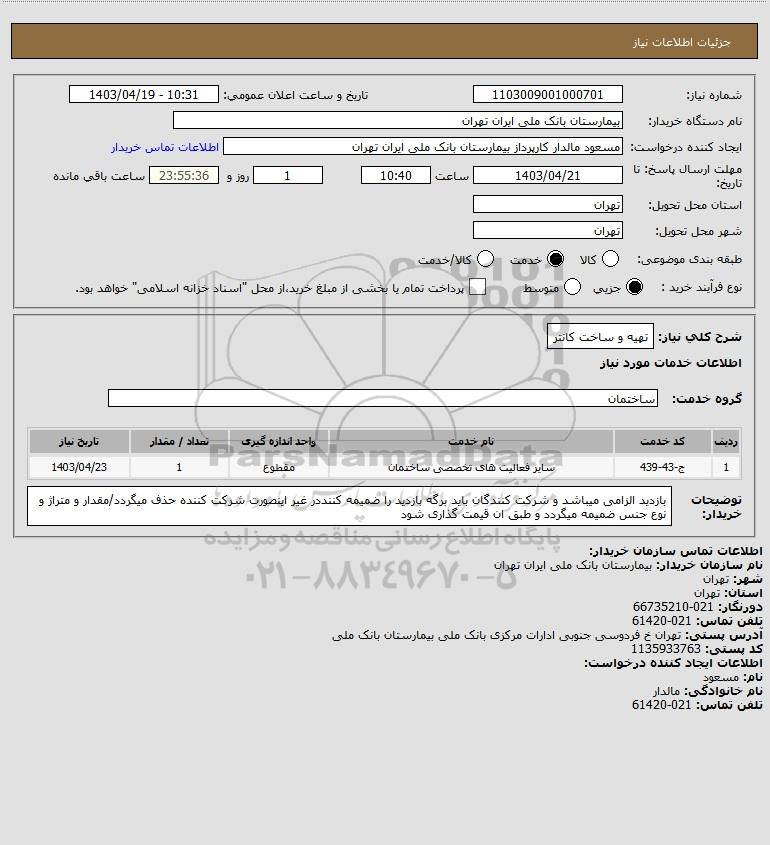نام دستگاه خریدار:بیمارستان بانک ملی ایران تهران