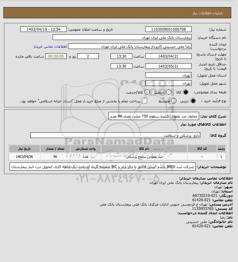 نام دستگاه خریدار:بیمارستان بانک ملی ایران تهران