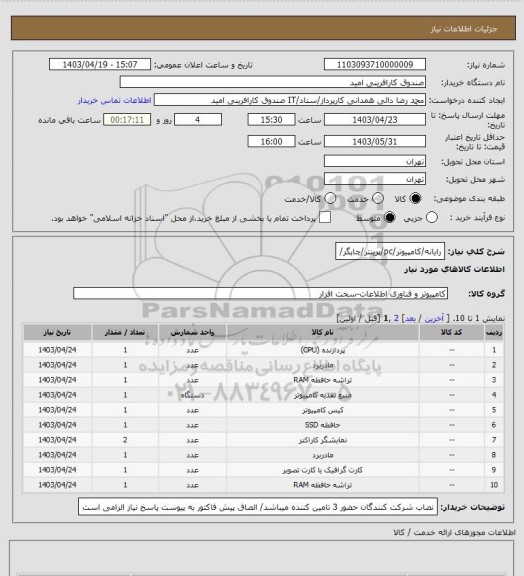 | 5 | -- | کیس کامپیوتر | عدد | 1 | 1403/04/24 |