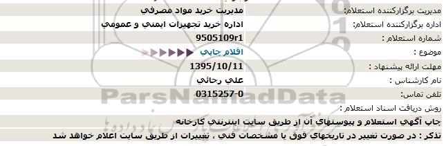 استعلام اقلام چاپی , استعلام اقلام چاپی