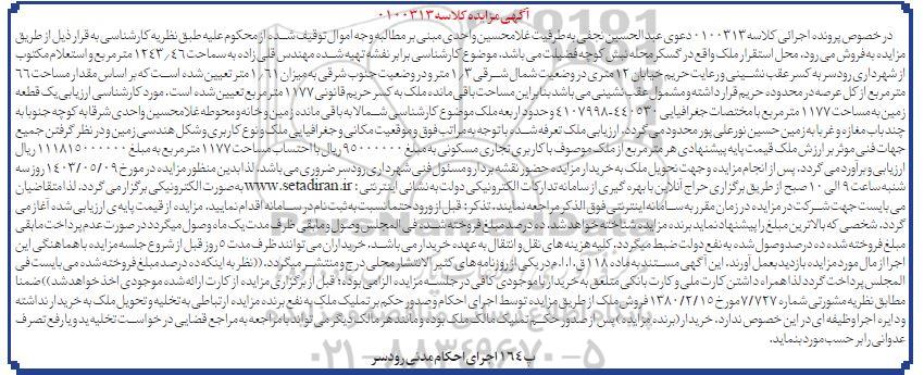 آگهی مزایده اموال کلاسه 0100313 ؟
