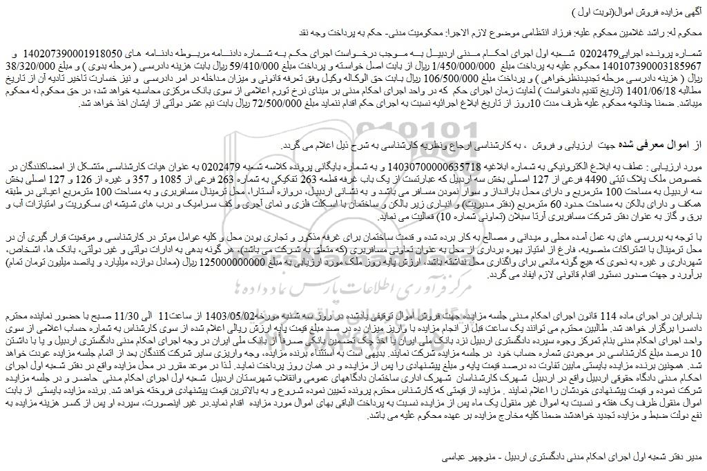 شعبه صادر کننده:شعبه اول اجرای احکام مدنی دادگستری شهرستان اردبیل/قدیم