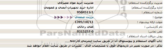 اداره برگزارکننده استعلام:  اداره خرید تجهیزات ایمنی و عمومی