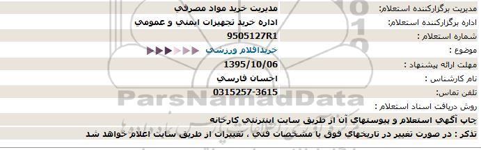 اداره برگزارکننده استعلام: اداره خرید تجهیزات ایمنی و عمومی