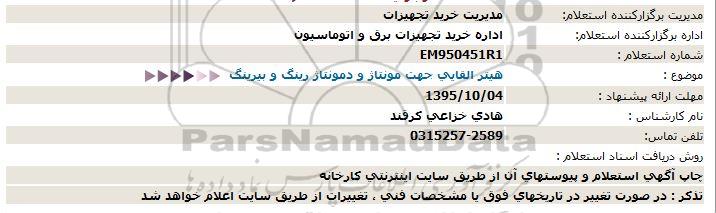 اداره برگزارکننده استعلام: اداره خرید تجهیزات برق و اتوماسیون