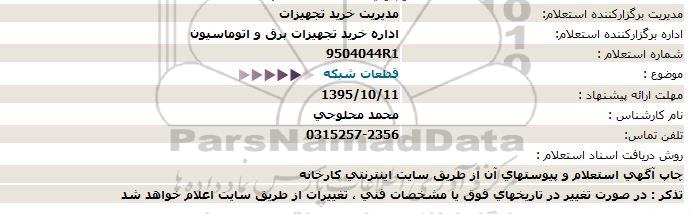 استعلام قطعات شبکه , استعلام قطعات شبکه