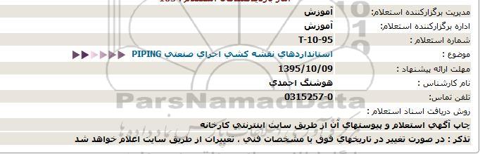 استعلام استانداردهای نقشه کشی اجرای صنعتی PIPING- 95.10.01, استعلام ، استعلام استانداردهای نقشه کشی اجرای صنعتی PIPING- 95.10.01
