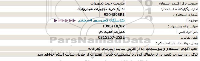 استعلام یکدستگاه کمپرسور 4سیلندر , استعلام یکدستگاه کمپرسور 4سیلندر