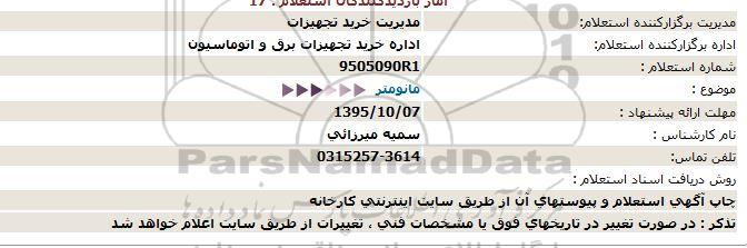 اداره برگزارکننده استعلام: اداره خرید تجهیزات برق و اتوماسیون