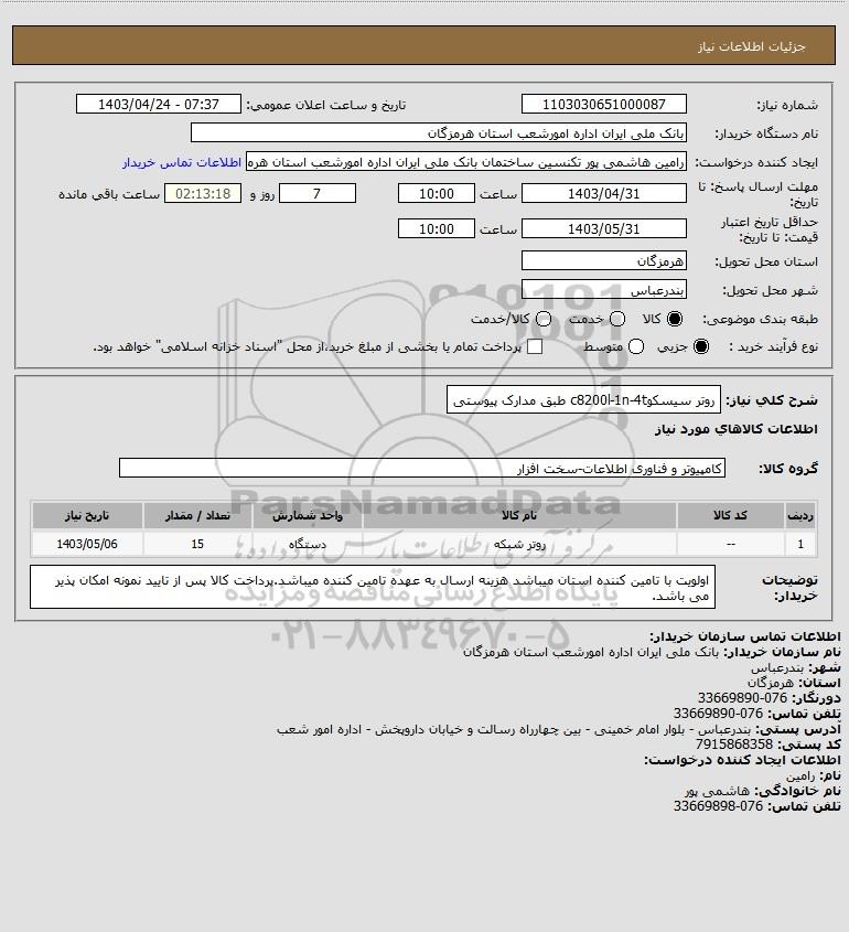 شرح کلی نیاز: روتر سیسکوc8200l-1n-4t طبق مدارک پیوستی