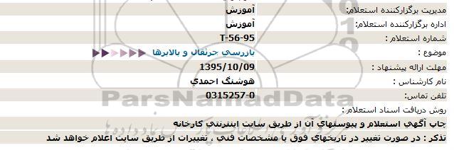 استعلام بها و موضوع استعلام استعلام , استعلام بازرسی جرثقال و بالابرها به اطلاع کلیه شرکتها و افراد متخصص واجد شرایط میرساند، آگهی گذار در نظر دارد از طریق استعلام بها، نسبت به انتخاب و دریافت پیشنهادات اقدام نماید. این استعلام با کد آگهی ثبت شده در سامانه خبرگزاری پارس نماد : 772760 منتشر شده است. مشخصات استعلام : تاریخ شروع استعلام: 1395/10/01 آخرین مهلت ارسال پیشنهاد قیمت : 1395/10/09 و محل اجرای پروژه : استان اصفهان میباشد. استعلام قیمت مورد درخواست : استعلام , استعلام بازرسی جرثقال و بالابرها با دستهبندیهای تخصصی و گروه های مرتبط : بالابر صنعتی, بازرسی فنی-تستهای مخرب و غیر مخرب - و غیره, مشاوره تحقیقات و مدیریت استاندارد, استعلام اطلاع رسانی میگردد.