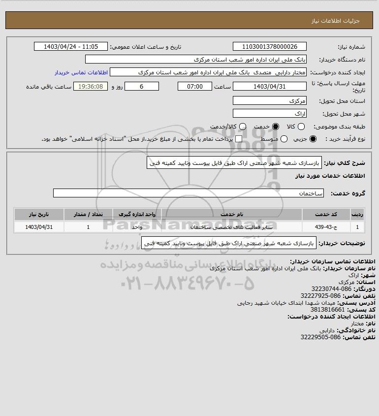 استعلام بازسازی شعبه شهر صنعتی اراک طبق فایل پیوست وتایید کمیته فنی, استعلام بازسازی شعبه شهر صنعتی اراک طبق فایل پیوست وتایید کمیته فنی