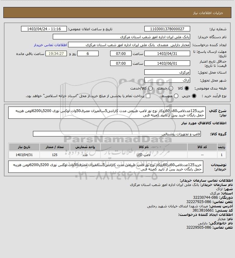 | 1 | -- | لامپ LED | عدد | 125 | 1403/04/31 |