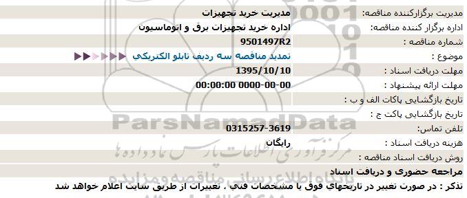 موضوع تمدید مناقصه خرید سه ردیف تابلو الکتریکی