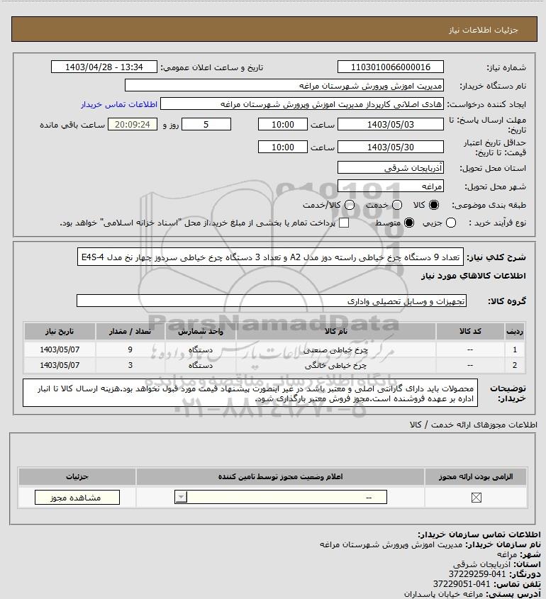نام سازمان خریدار: مدیریت اموزش وپرورش شهرستان مراغه