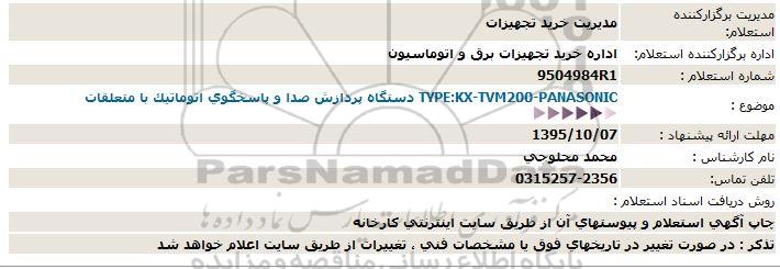 اداره برگزارکننده استعلام: اداره خرید تجهیزات برق و اتوماسیون