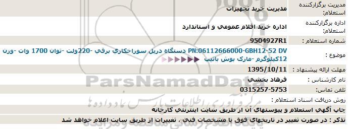 اداره برگزارکننده استعلام: اداره خرید اقلام عمومی و استاندارد