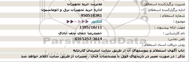 اداره برگزارکننده استعلام: اداره خرید تجهیزات برق و اتوماسیون