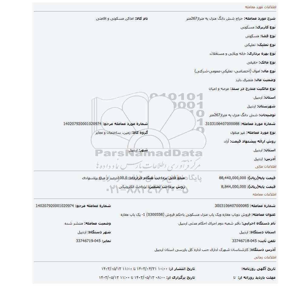 شماره مورد معامله: 3103106407000088 | شماره مورد معامله مرجع: 140207920001020974 | |